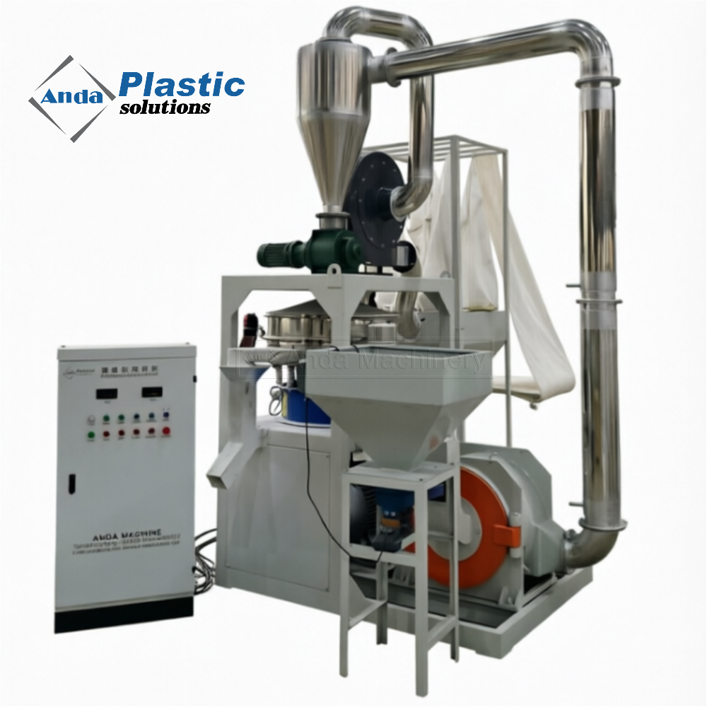 Caractéristiques principales:<\/strong><\/p> 1. Adopte un joint d\"huile importé d\"Allemagne, aucune fuite ne se produit.<\/p> 2. Il dispose d\"un dispositif de collecte de poussière, réduisant efficacement la pollution par la poussière.<\/p> 3. En utilisant à la fois le refroidissement par eau et le refroidissement par air, réduisez efficacement la température de fonctionnement du corps de la machine.<\/p> 4. La porte de la machine principale est ouverte, facile à réparer et à remplacer l\"outil.<\/p> 5. Tous les tuyaux de transport sont en acier inoxydable, antirouille et sans pollution du matériau PVC.<\/p> <\/p> <\/p> <\/p> Paramètres principaux:<\/strong><\/p> Modèle<\/p><\/td> SMF-400<\/p><\/td> SMF-500<\/p><\/td> SMF-600<\/p><\/td> SMF-800<\/p><\/td><\/tr> Puissance du moteur principal (KW)<\/p><\/td> 30<\/p><\/td> 37<\/p><\/td> 55<\/p><\/td> 75/90<\/p><\/td><\/tr> Capacité (kg / h)<\/p><\/td> 50-120<\/p><\/td> 150-200<\/p><\/td> 200-400<\/p><\/td> 500-700<\/p><\/td><\/tr> Poids (kg)<\/p><\/td> 1000<\/p><\/td> 1200<\/p><\/td> 1800<\/p><\/td> 1900<\/p><\/td><\/tr> Finesse de sortie<\/p><\/td> 30-50 mailles réglables<\/p><\/td><\/tr> Refroidissement<\/p><\/td> Refroidissement éolien + refroidissement par eau<\/p><\/td><\/tr><\/tbody><\/table><\/div>